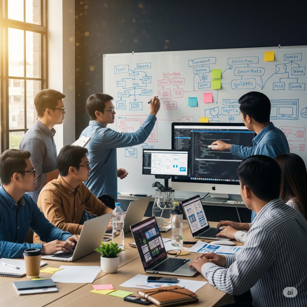 Tim kami mulai coding dan mengintegrasikan semua fungsionalitas yang dibutuhkan.